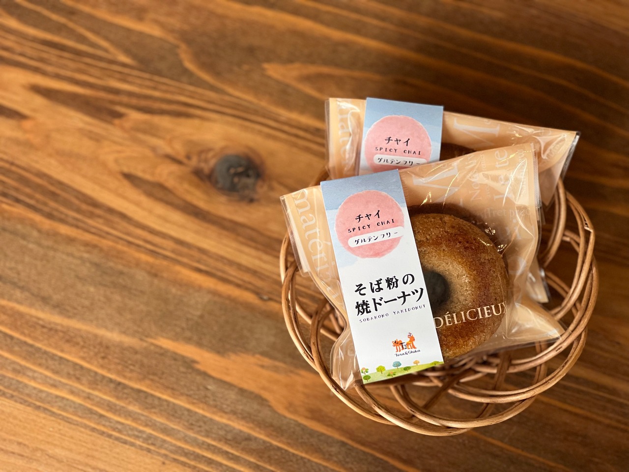 福岡県鞍手町の新鮮な卵と佐賀県産の蕎麦粉、国産バターをたっぷり使い、パサつきのない、しっとりとやさしい甘さに焼き上げました。チャイ好きの店主がどうしても作りたかった一品で、チャイラテや紅茶好きが気になる変わり種のフレーバーです。油で揚げず、小麦粉を一切使わず、厳選した素材のみを使った安心・安全で美味しい焼きドーナツです。