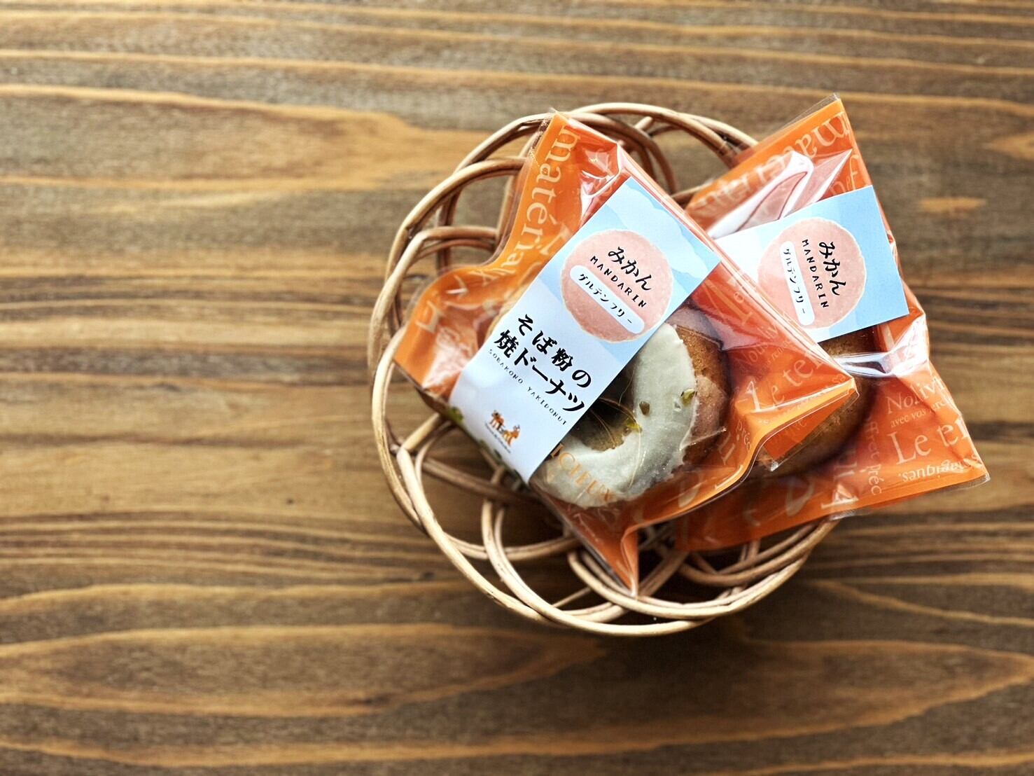 福岡県鞍手町の新鮮な卵と佐賀県産の蕎麦粉をたっぷりと使い、パサつきのない、しっとりとやさしい甘さに焼き上げました。ドライミカンの酸味と歯ごたえがアクセントになっていてドーナツのおいしさを引き立てています。小麦粉を一切使わず、厳選した素材のみを使った安心・安全で美味しい焼きドーナツです。