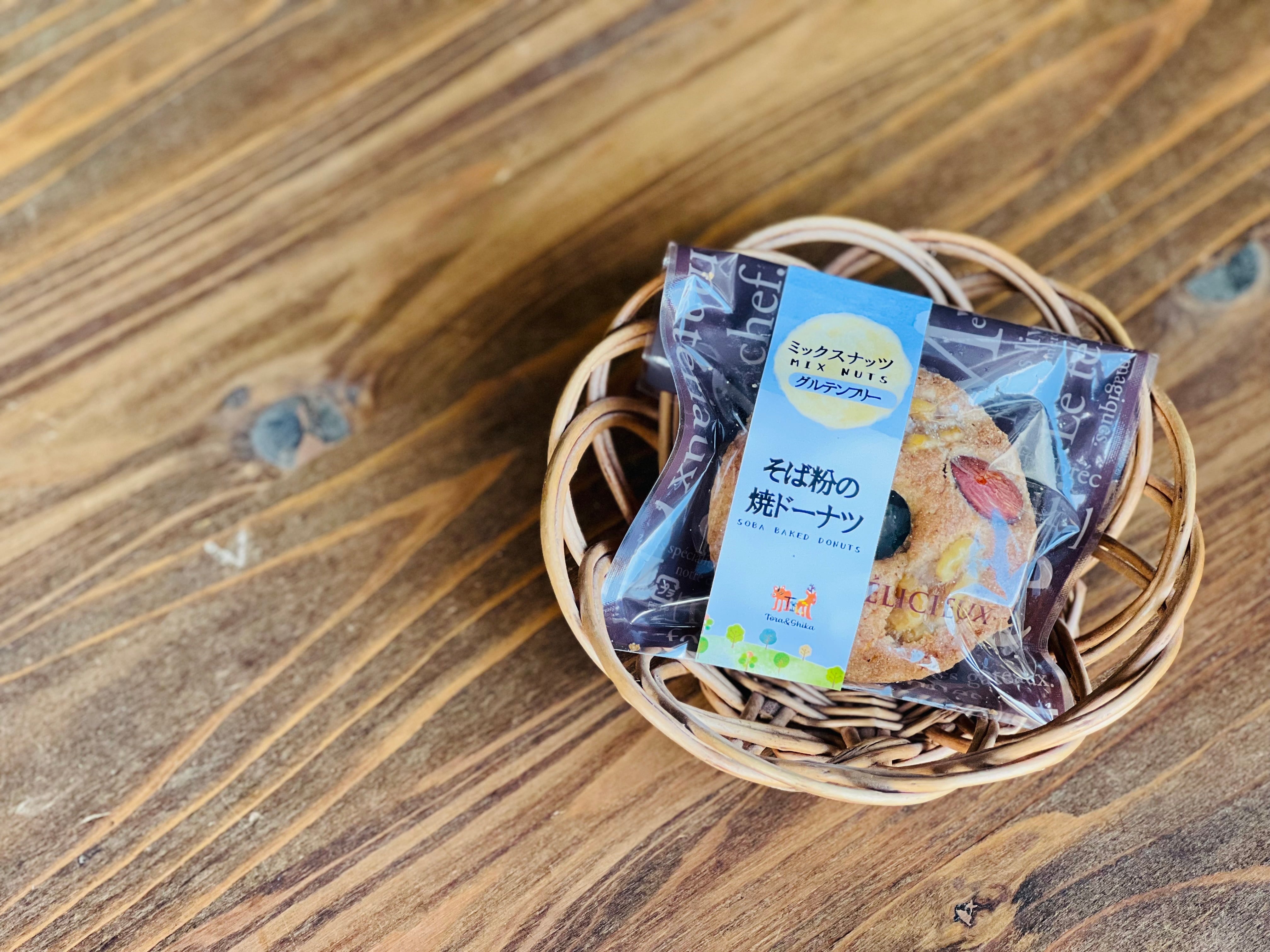 福岡県鞍手町の新鮮な卵と佐賀県産の蕎麦粉をたっぷりと使い、パサつきのない、しっとりとやさしい甘さに焼き上げました。ミックスナッツ香ばしさと食感がアクセントになっていてドーナツのおいしさを引き立てています。小麦粉を一切使わず、厳選した素材のみを使った安心・安全で美味しい焼きドーナツです。